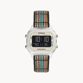 Sku:FS5895|表壳尺寸:40 毫米|机芯:数字|平台:RETRO DIGITAL|表带材质:100% rPET|表壳防水性:5 ATM|表壳材质:尼龙|表壳颜色:透明|表盘颜色:负片显示|表带时尚颜色:黑色、棕色、绿色、橙色|可互换兼容性:22 毫米|表带宽度:22 毫米|闭合方式:魔术贴|表带内周:185 +/- 5 毫米|水晶类型:矿物|电池类型:CR2025|