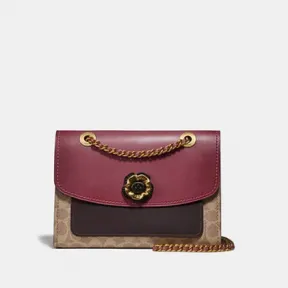 Structured and lightweight, the Parker is a versatile bag that combines uptown elegance with downtown ease. Finished with our Tea Rose turnlock closure, this streamlined style is crafted in a mix of colorblock refined leather and our Signature canvas. Convert the leather chain strap from long to two short handles. Refined calf leather and Signature coated canvas| Inside zip and multifunction pockets| Turnlock closure, fabric lining| Handles convert to shoulder strap with 49cm drop| Outside slip pocket| 26cm (L) x 17.5cm (H) x 10cm (W)|